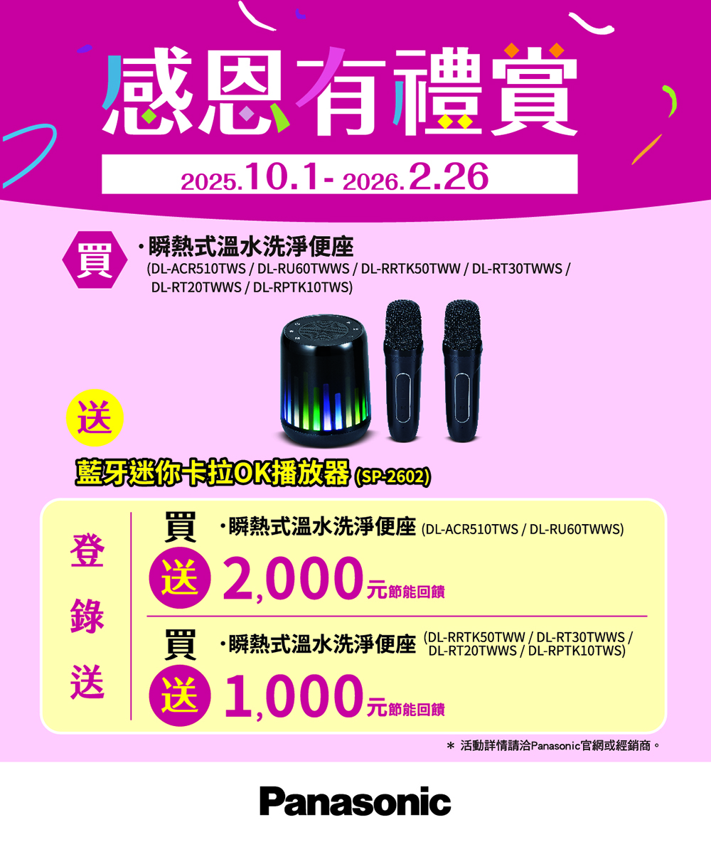 除商品有消費者保護法第十九條第一項但書所規定之合理例外情事外,您在Panasonic線上購物商城所購買的商品,均享有到貨次日起7天鑑賞期隨時解約退貨之權益。(到貨日的計算以物流簽收單為憑,含例假日)【請注意,鑑賞期不等同於試用期,收到商品時,請先確認商品內容物是否完整,商品數量是否無誤】