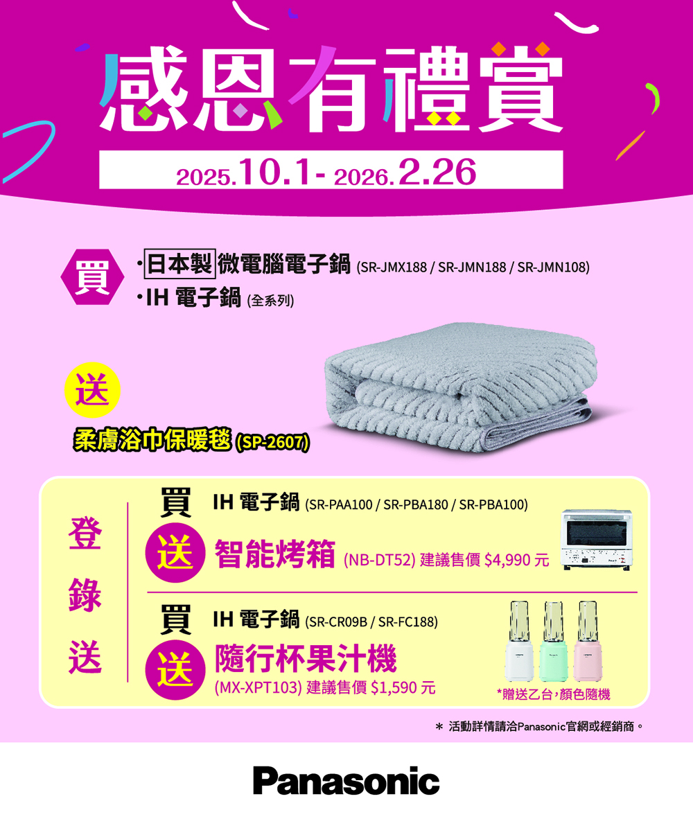除商品有消費者保護法第十九條第一項但書所規定之合理例外情事外,您在Panasonic線上購物商城所購買的商品,均享有到貨次日起7天鑑賞期隨時解約退貨之權益。(到貨日的計算以物流簽收單為憑,含例假日)【請注意,鑑賞期不等同於試用期,收到商品時,請先確認商品內容物是否完整,商品數量是否無誤】