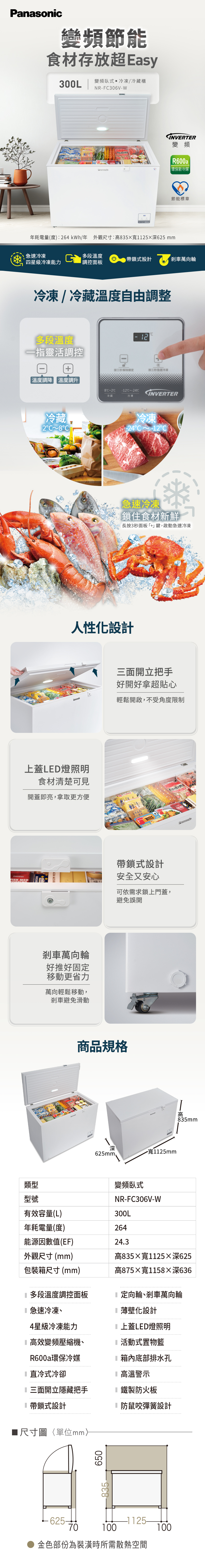 300L臥式冷凍/冷藏櫃 NR-FC306V
